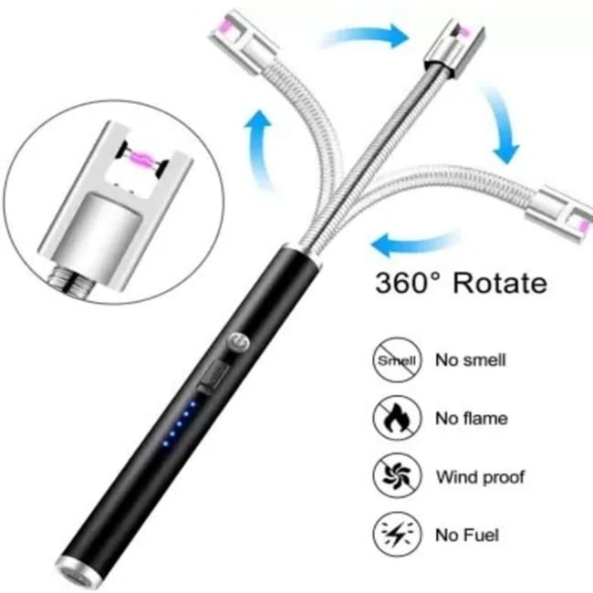 360 Degree Flexible Neck Rechargeable Electric Kitchen Gas LIghter Steel, Plastic Electronic Gas Lighter