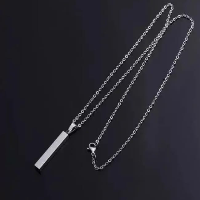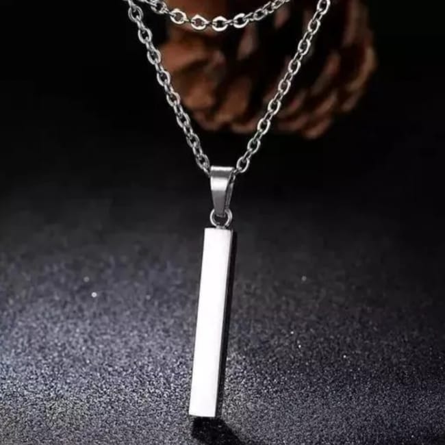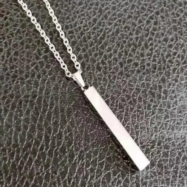 3D Stainless Steel Bar Pendant Necklace Men Cool Vertical Pendant Bead Silver Chain