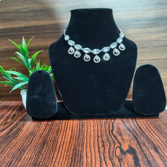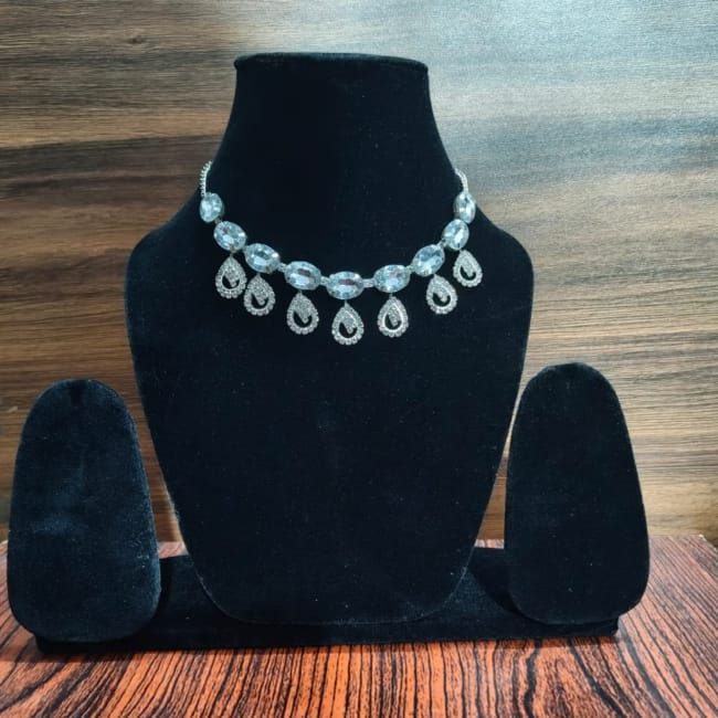 Antique Silver Plated American Diamond Necklace For Women