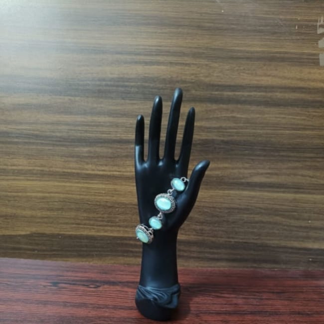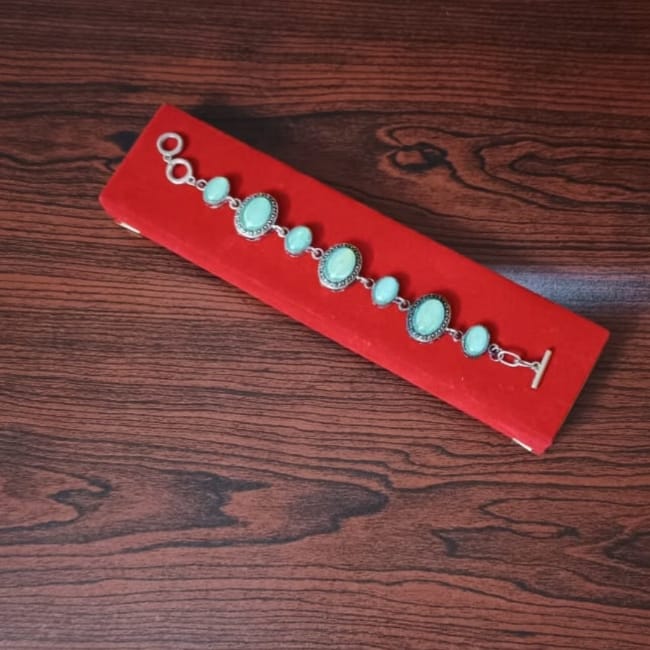 Aqua Chalcedony Stone Sterling Silver White Bracelet For Women Gk203