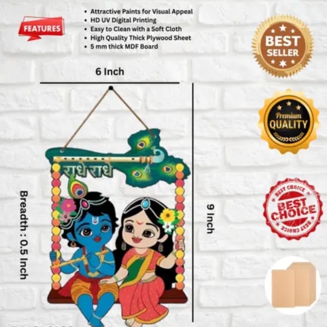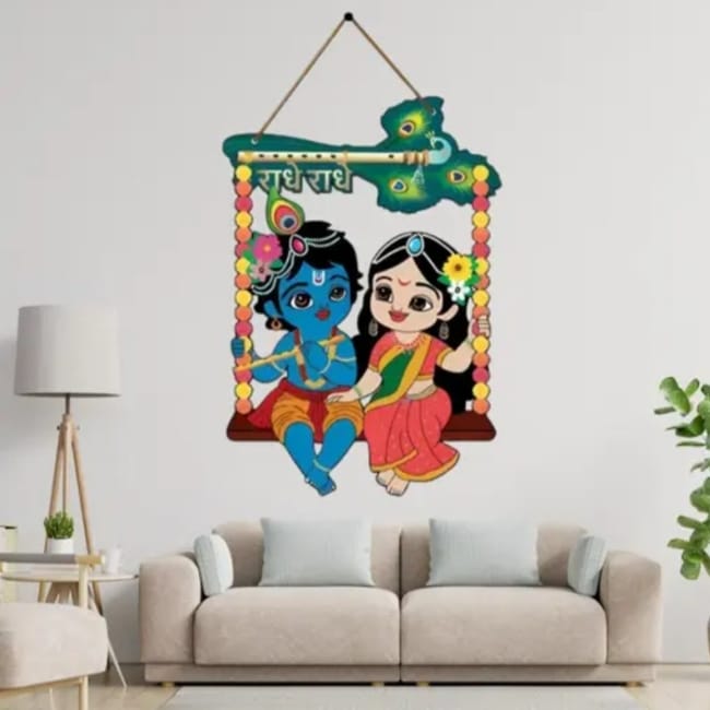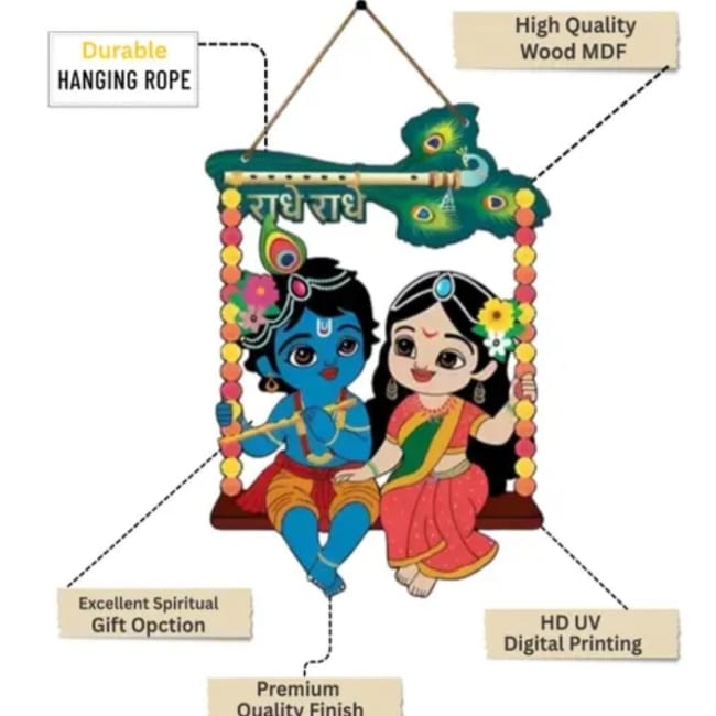 Bal Krishna And Radha Krishna Wooden Wall Hanger