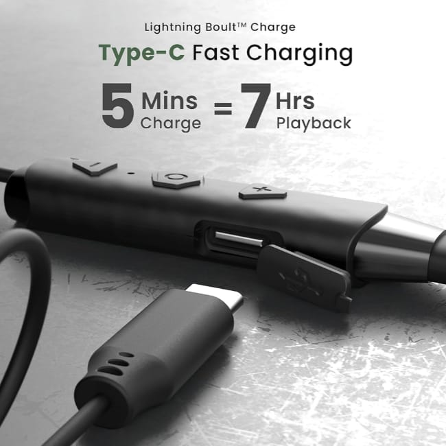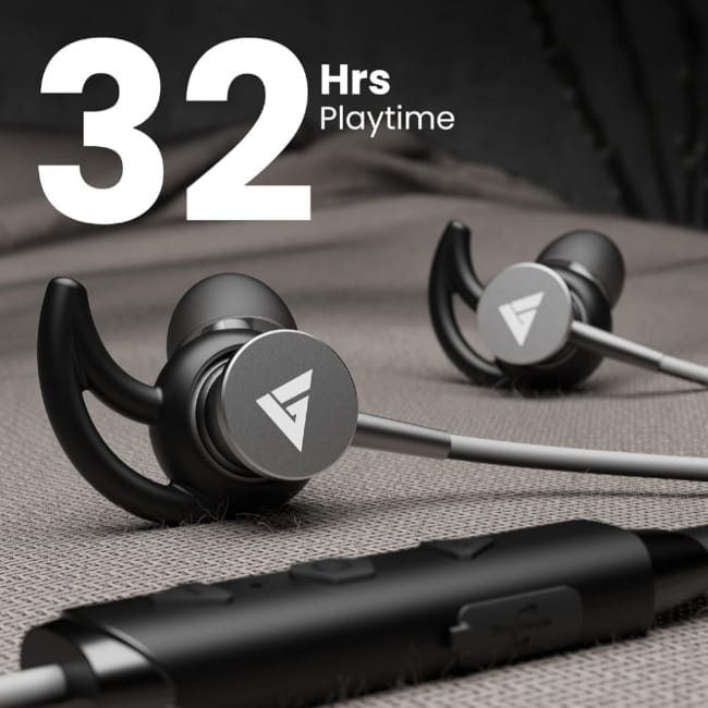 Boult Audio FXCharge Bluetooth Earphones With 32H Playtime, Silicone Neck Band (Black)