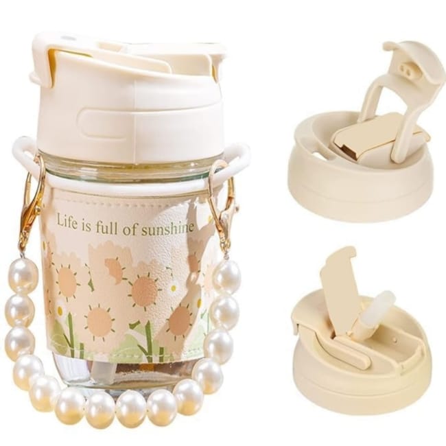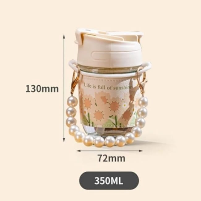Coffee Mug Pearl Carry Chain Glass Water Bottles With Straw 350ML