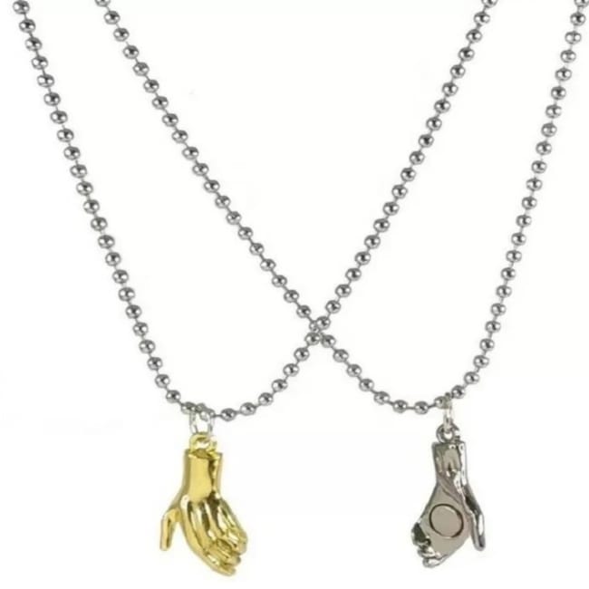 Couple Handshake Silver Stainless Steel Necklace