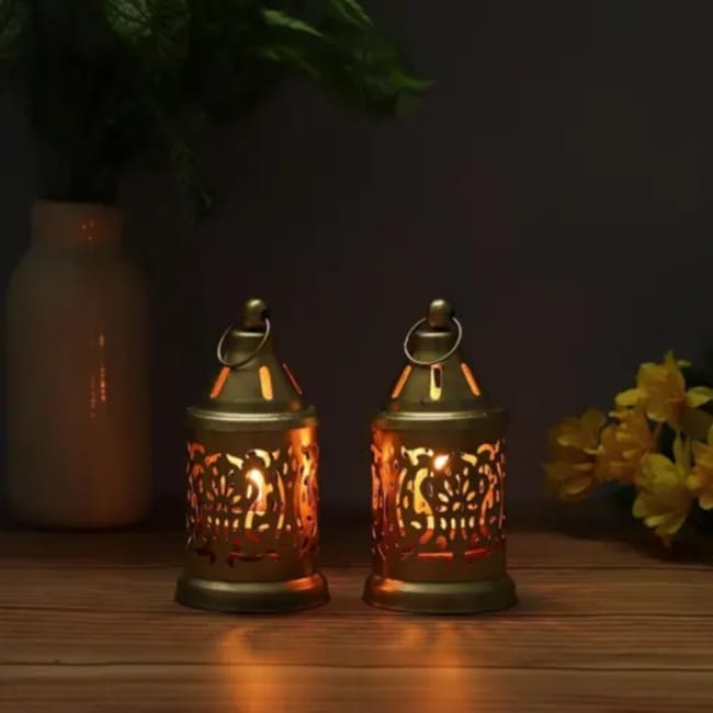 Decorative Metal Lanterns Set Of 2 Tealight Candles