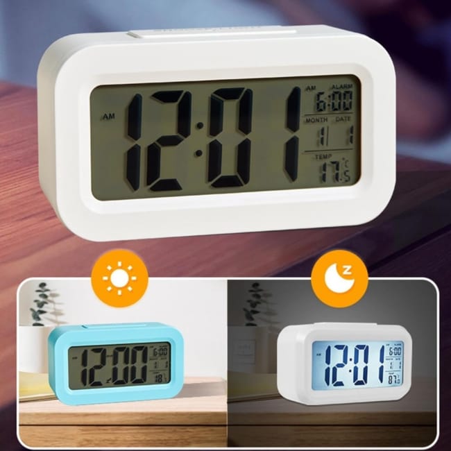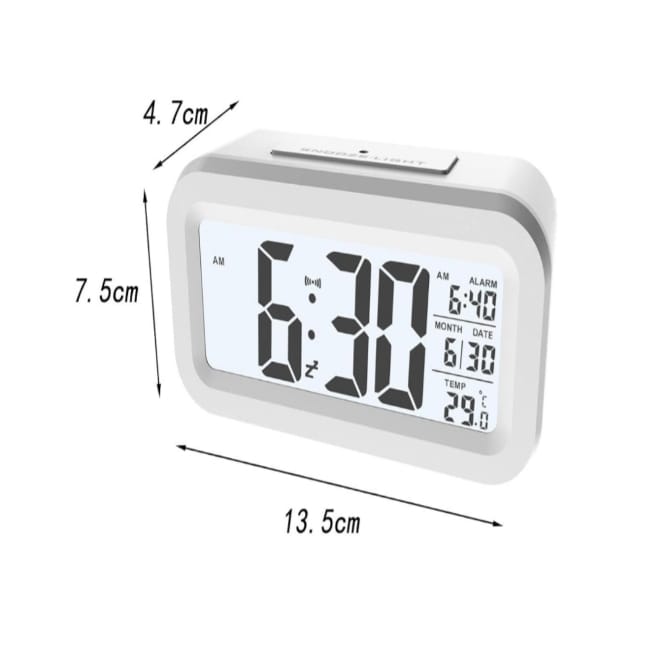 Digital Alarm Clock With Indoors Temperature Date For Office Desktop Bedroom White