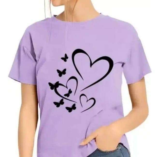 Graphic Print Women Round Neck Heart Lavender T-Shirt