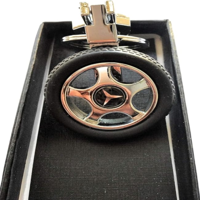 Imported Black Rubber & Steel Finish Metal Locking High Quality Wheel Keychain
