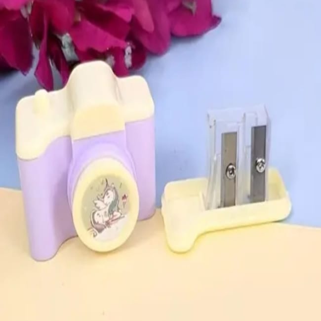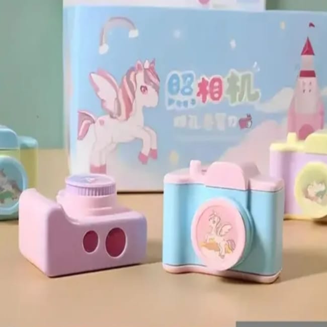 Kids Unicorn Print Camera Pencil Sharpener For Single Blade