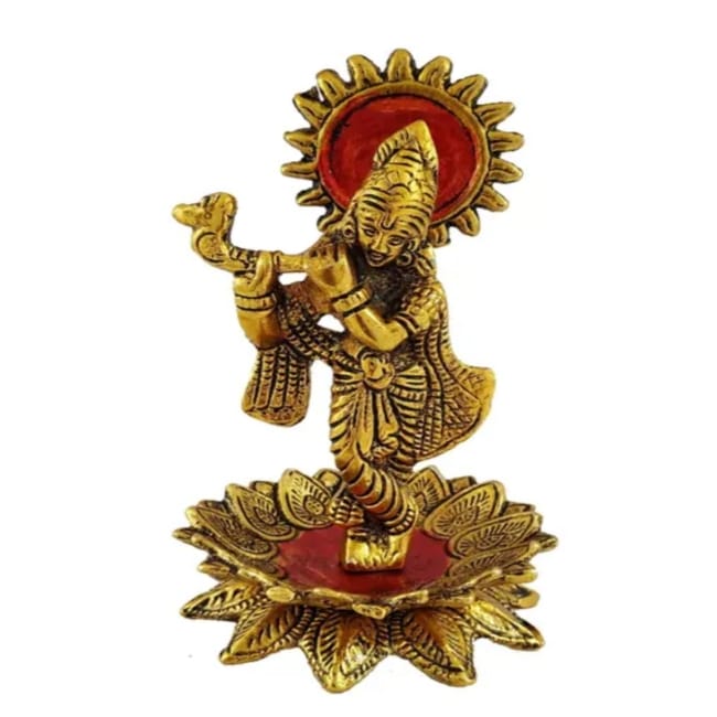 Krishna Playing Flute On Kamal Flower For Home