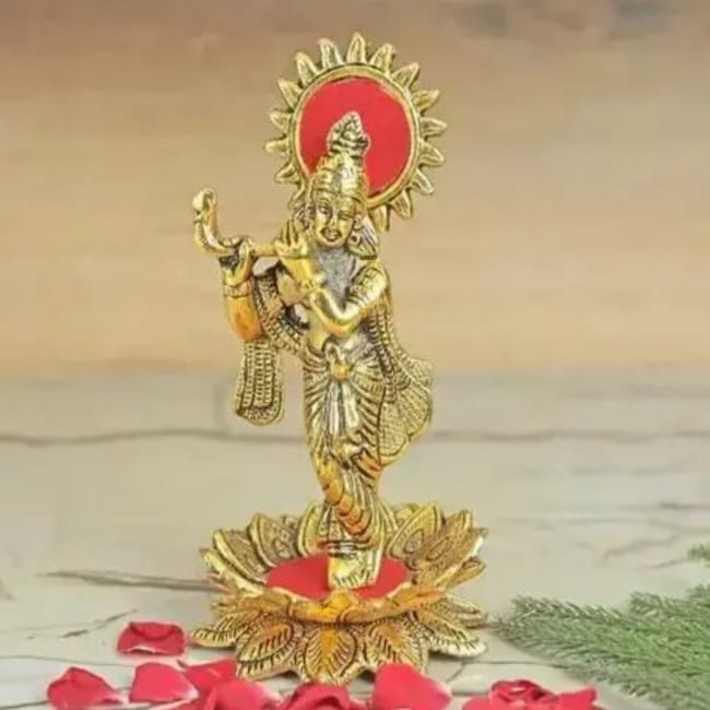 Krishna Playing Flute On Kamal Flowers For Home