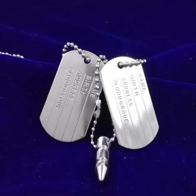 Military Dog Tag Tag Alloy Pendant With Chain Silver Alloy Locket Set