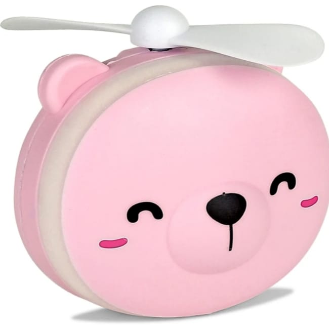 Mini Teddy Portable Fans With LED Light & Mirror Rechargeable Fan