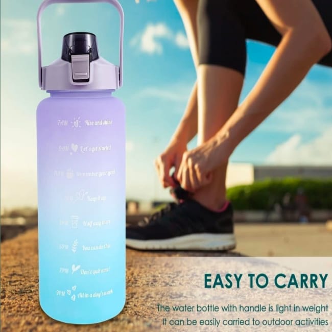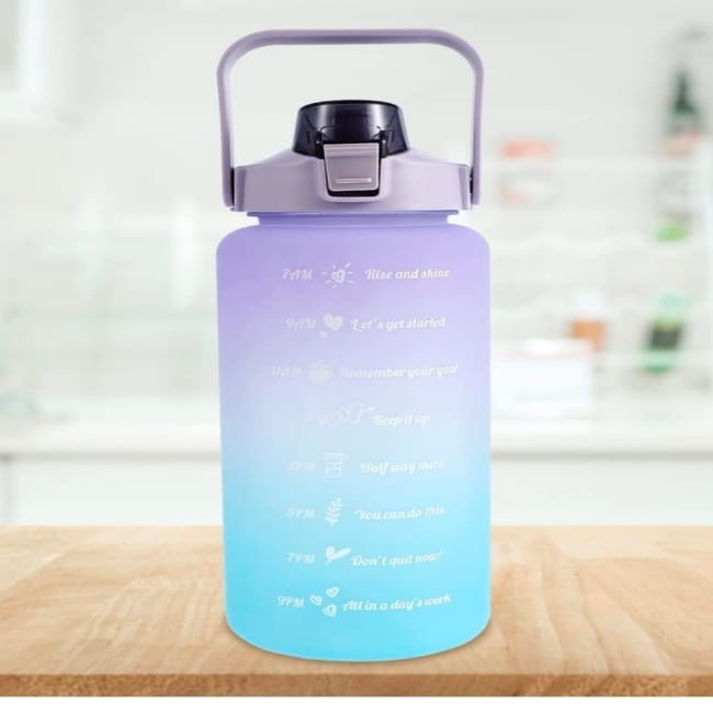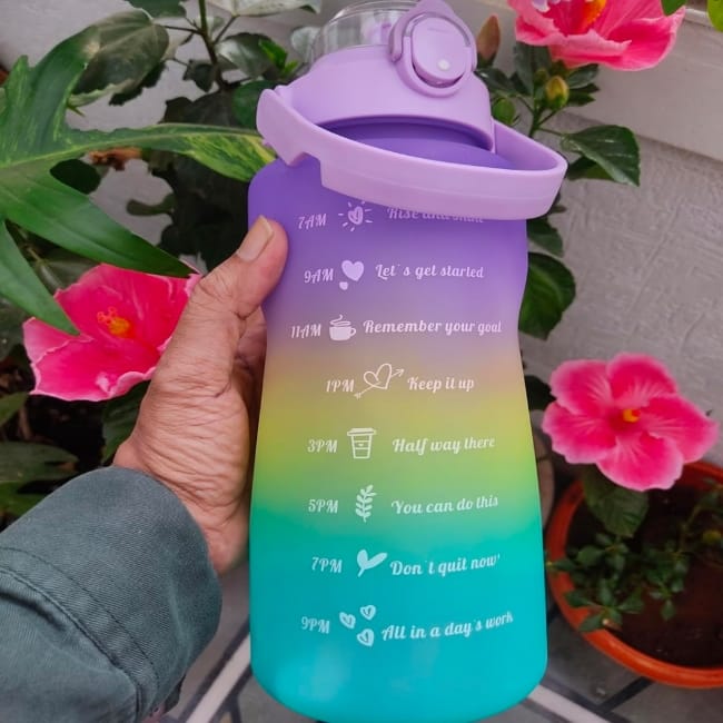 Motivational Multi-Color Water Bottle 2000ml Time Marker With Straw, Unbreakable Leakproof BPA Free Non-Toxic Sipper Bottle For All Spaces