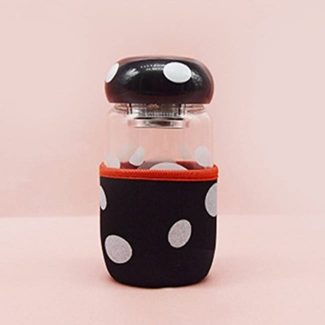 Mushroom Glass Portable Tea Bottle With Tea Strainer & Cups Cover