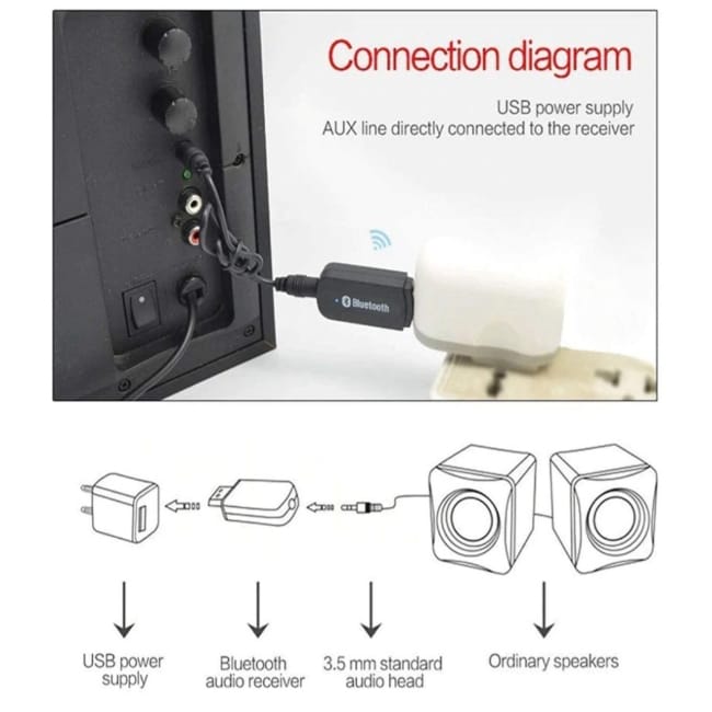 Phone Bluetooth Stereo System Audio Aux Receiver USB Adapter 3.5 MM For Car Speakers & Others