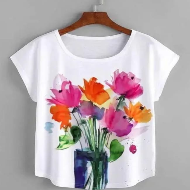 Polyester Round Neck Casuals Printed Women T-Shirt