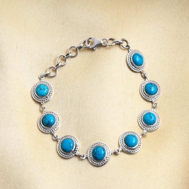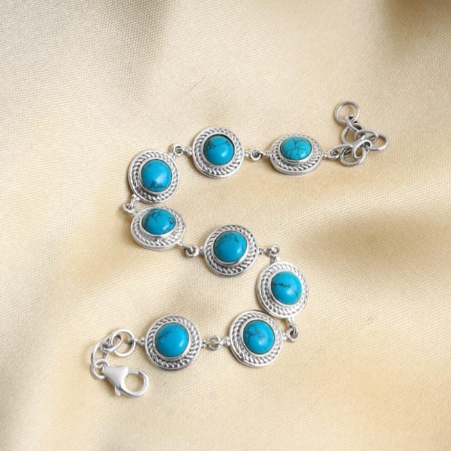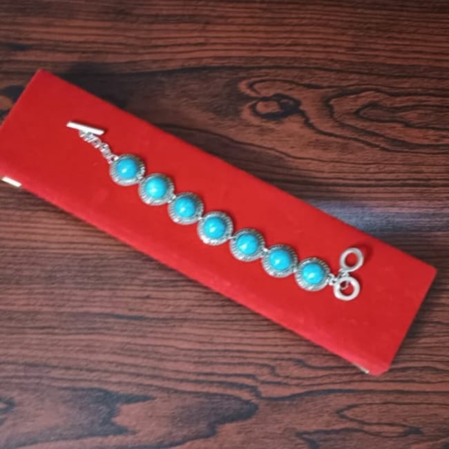 Round Sky-Blue Stones On Silvered Metal Statement Toggle Cuff Bracelet Gk191