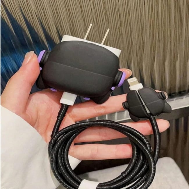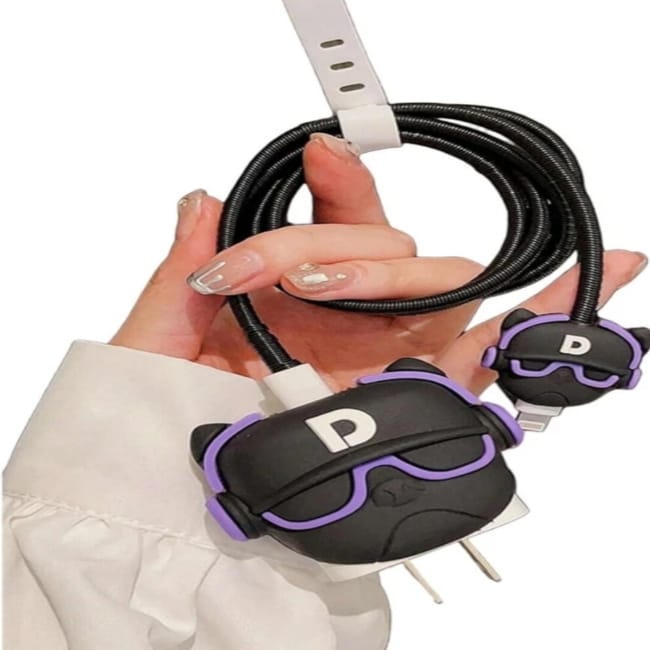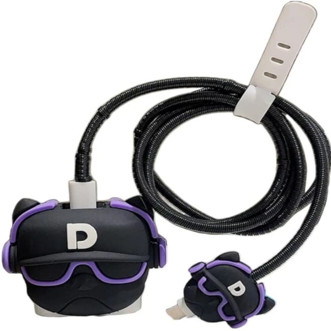 Silicone Pull String Iphone Charging Cover BULL DOG PURPLE