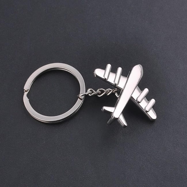 Silver Aircraft Airplane Model Metal Keychain For Car & Bikes