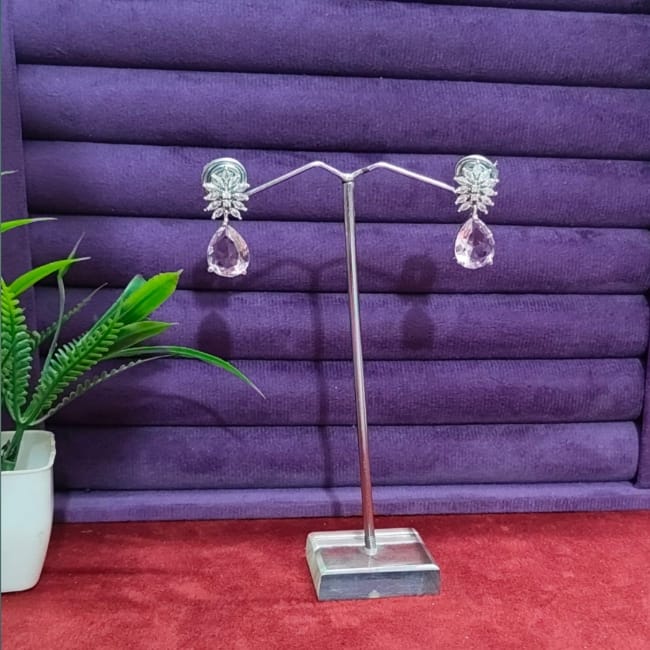 Silver Plated Pink Design Stylish Earrings Gk74