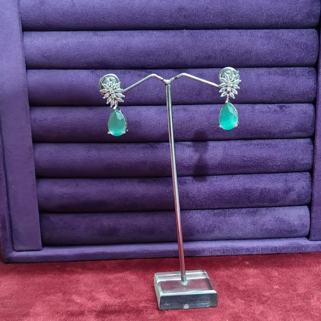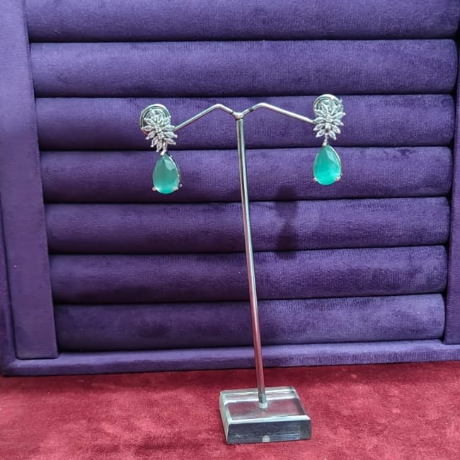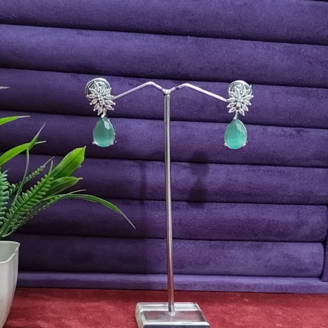 Silver Plated Sky-Blue Design Stylish Earrings Gk75