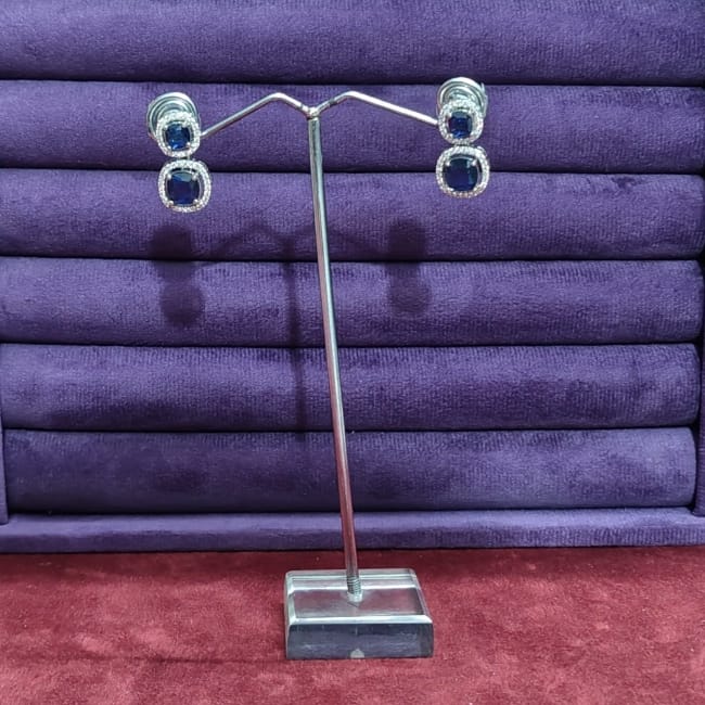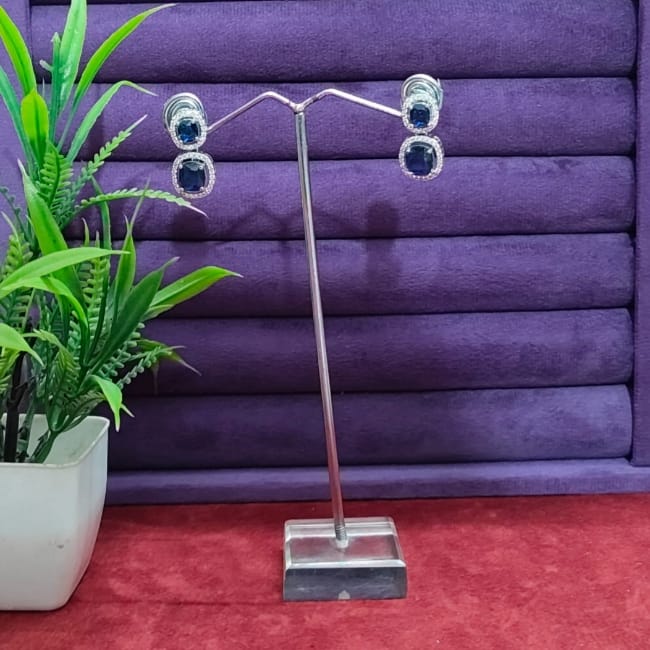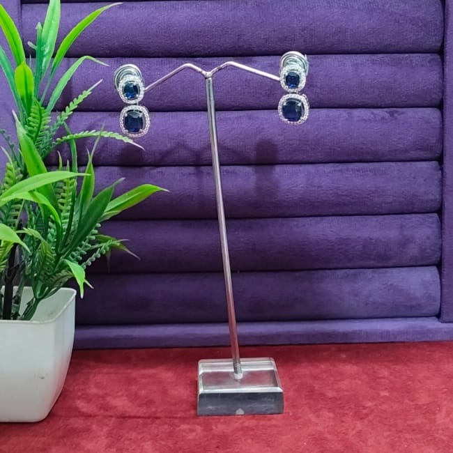 Silver Plated Square American Diamond Stones Earrings Gk80