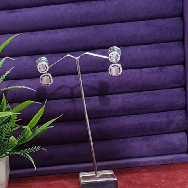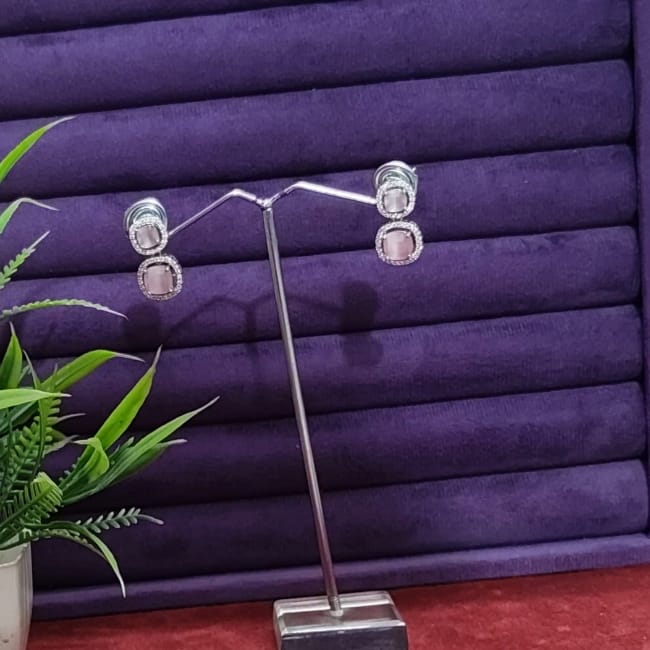 Silver Plated Square American Diamond Stones Earrings Gk81