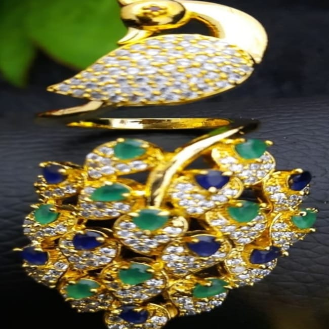 Sizzling Graceful Gold Plated Colorful Peacock Shape Ring For Women