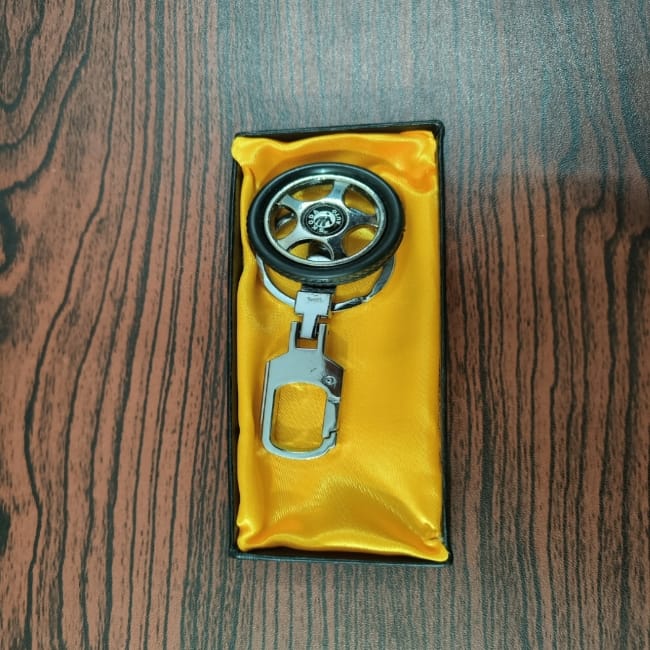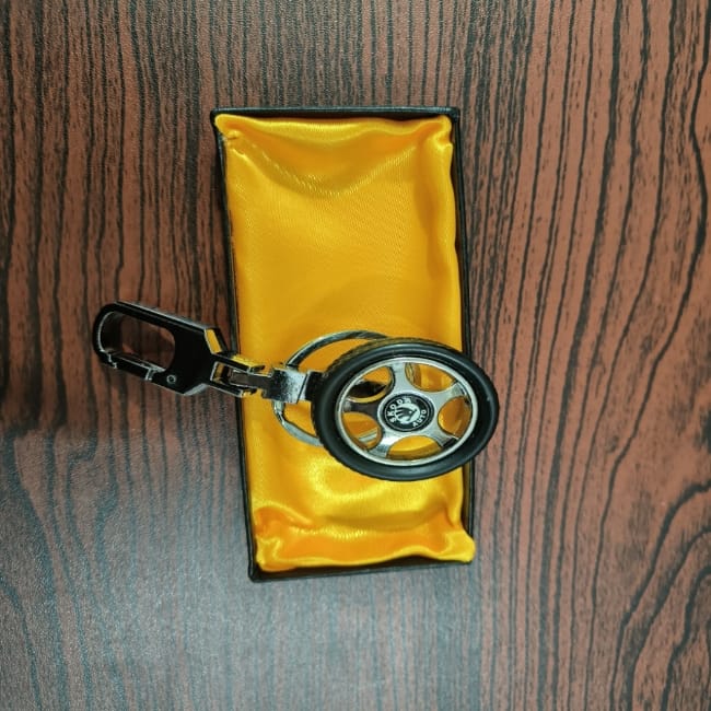 Skoda Auto Rotating Leather Wheel Keychain
