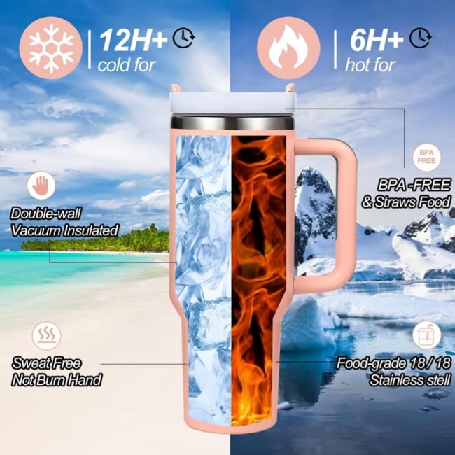 Stainless Steel Tumbler Hot And Cold With Handle & Lid 2 Straw, Double Insulated Cup S