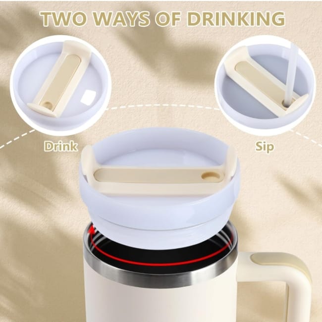Stainless Steel Tumbler Hot And Cold With Handle & Lid 2 Straw, Double Insulated Cups FW
