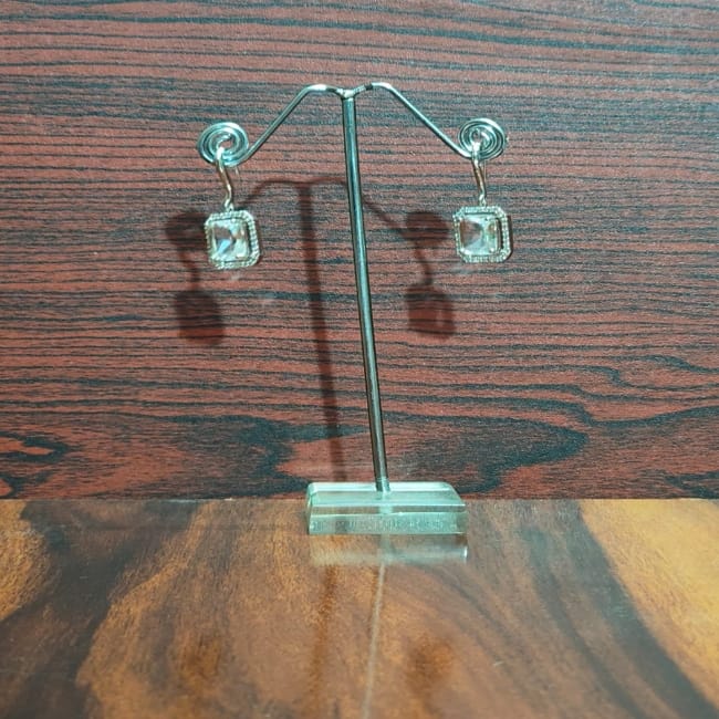 Stunning Clear Vintage Octagon Rectangle Glass Rhinestone Dangle Earings Gk120