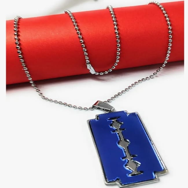 Stylish Blue Blade Pendant, Locket With Beaded Chain For Men