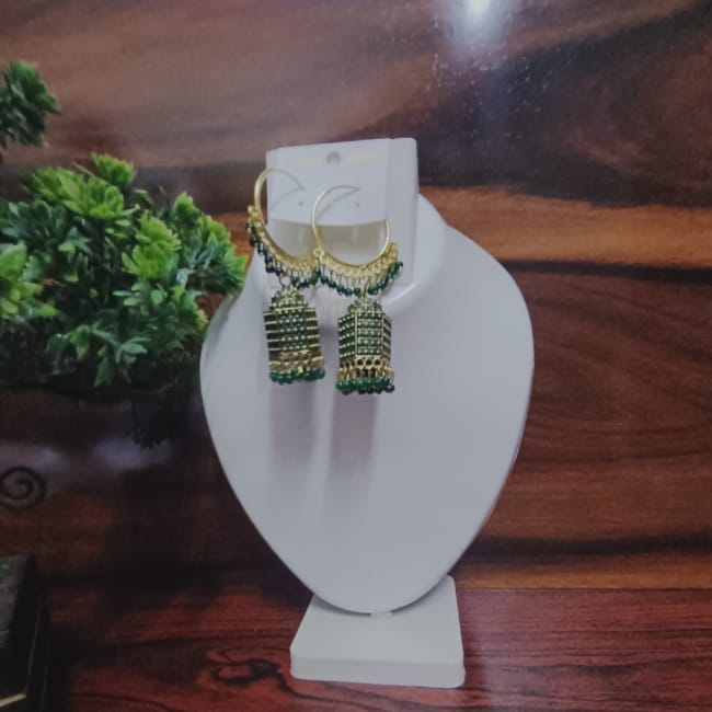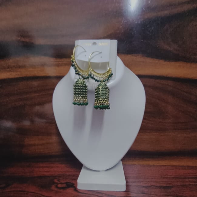 Stylish Golden / Green Traditional Hoop Jhumka Earrings For Girls