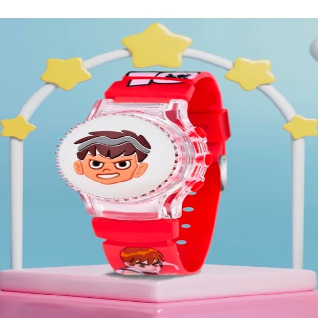 Stylish Kids Rotating LED Cartoon Action Hero Digital Watch- For Boys & Girls Ben10 Red