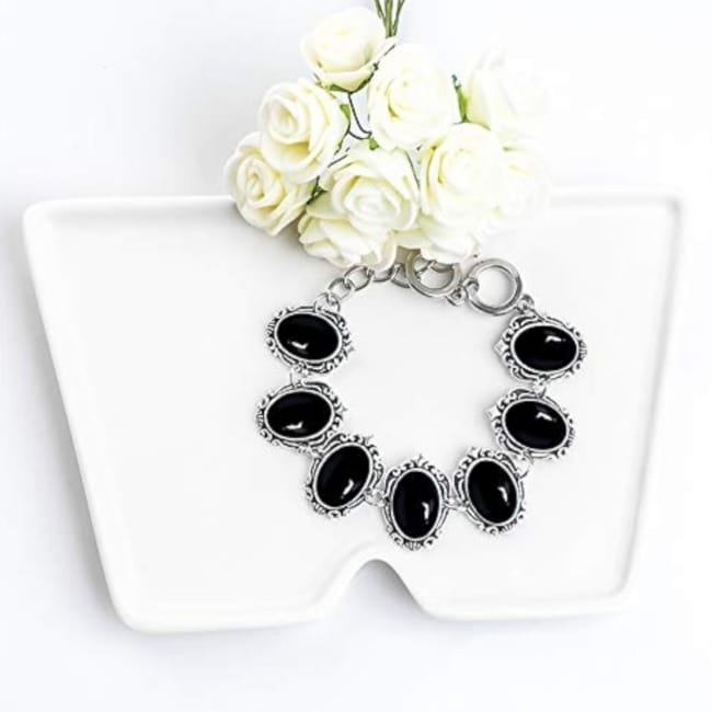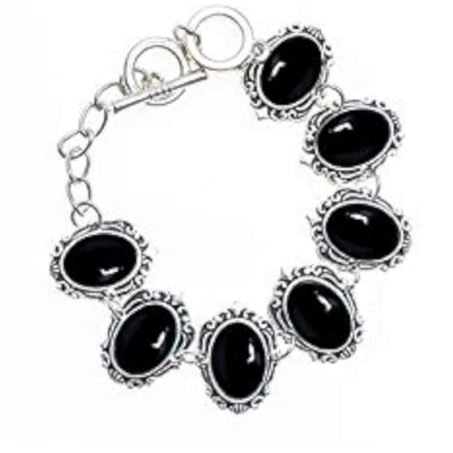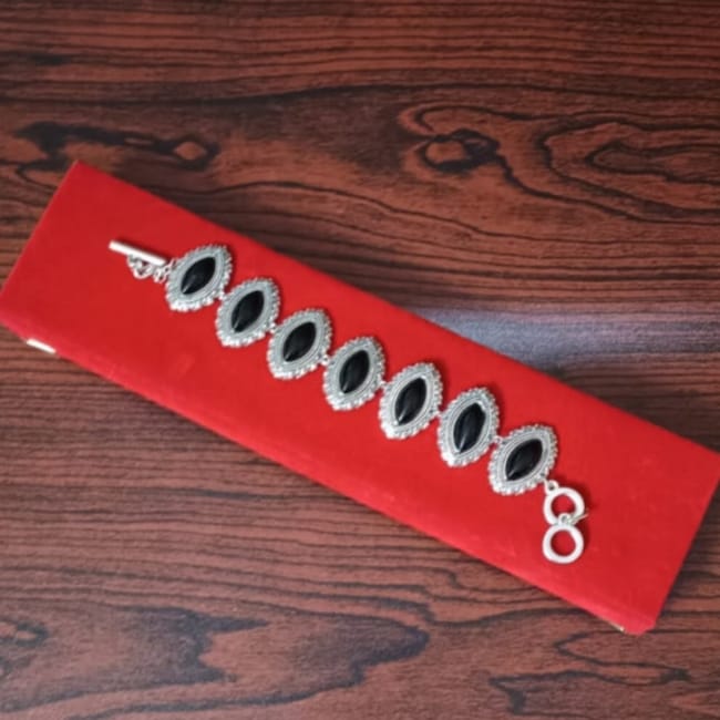 Stylish Party Wear Black Onyx Silver Bracelet Gk193