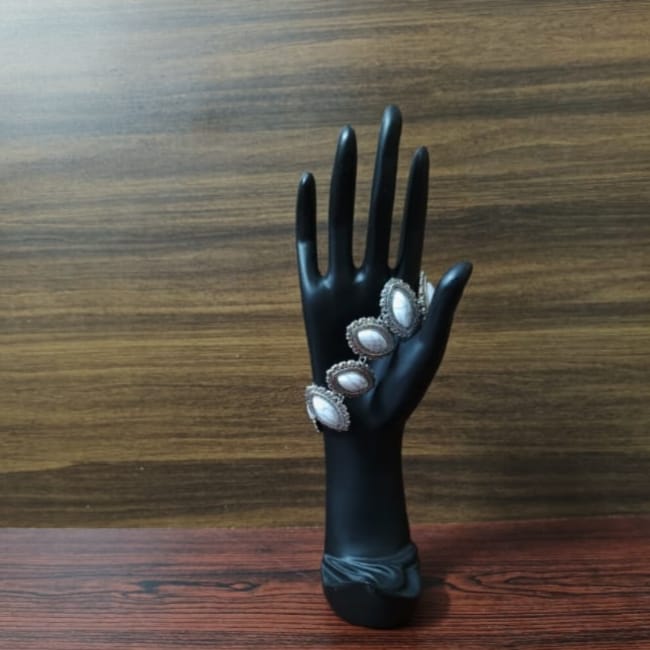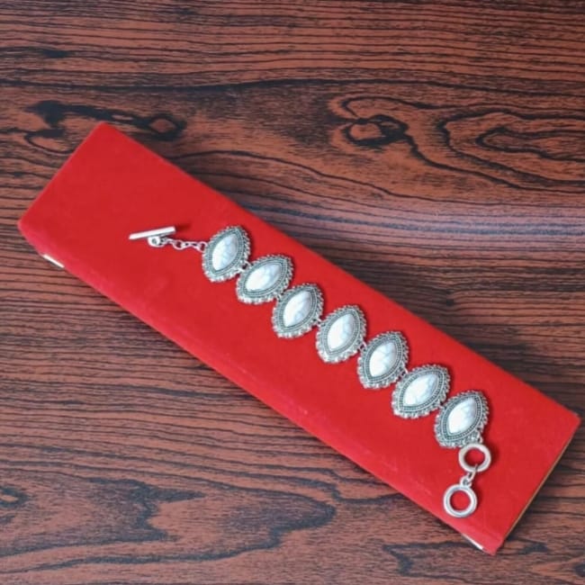 Stylish Party Wear White Onyx Silver Bracelet Gk194