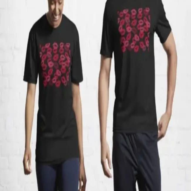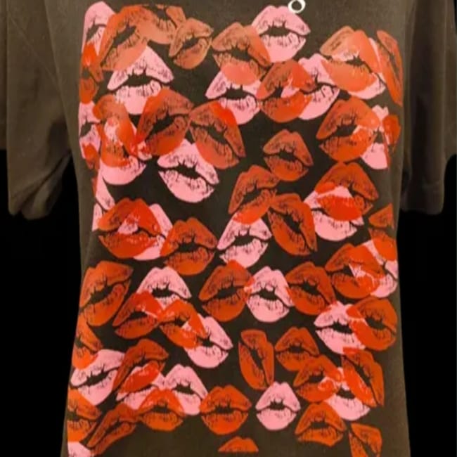 TRENDY RED LIPS PRINTED T-SHIRT BLACK