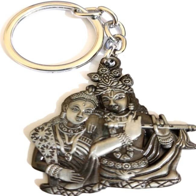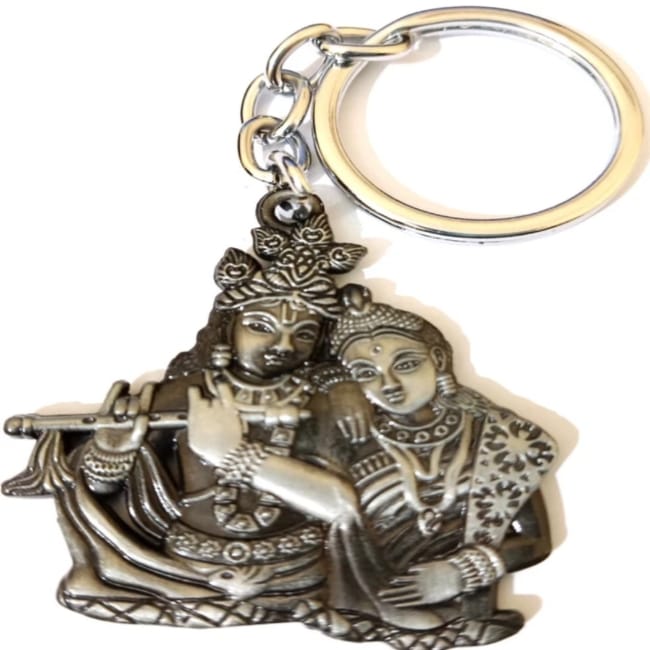 Two Sided Radha Krishna Metals Antique Black Key Chain