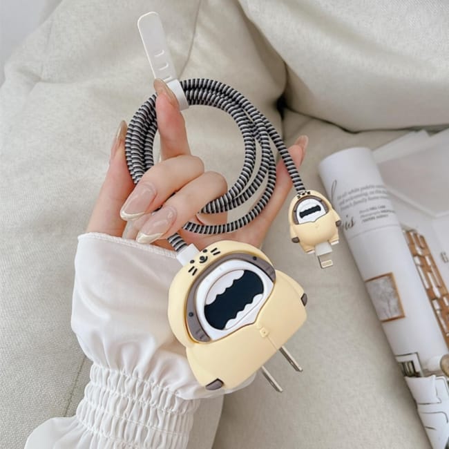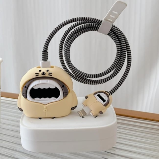 Unique Design Funny 3D Cartoon Cover Cable Protector For Iphone Shark