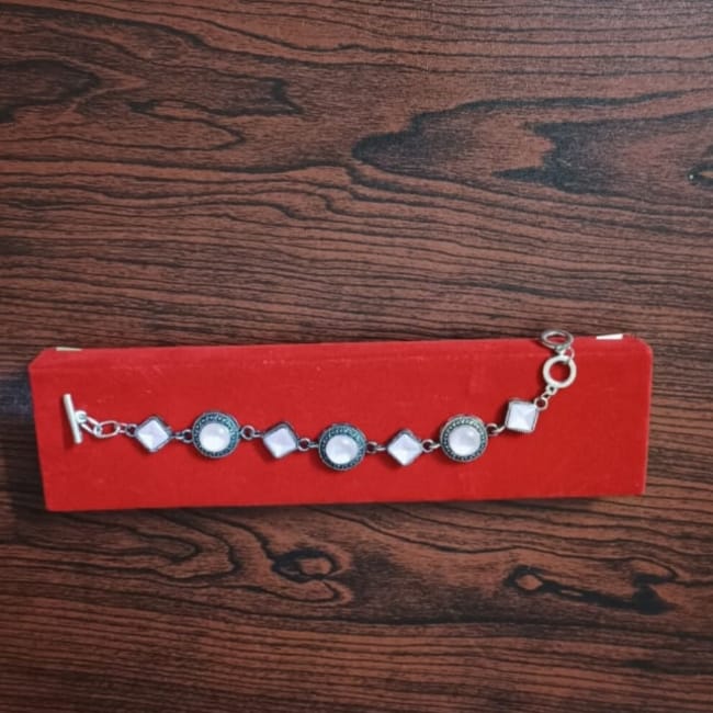 Vintage Artisan Sterling Silver Pearl Round Square Bracelet Gk196