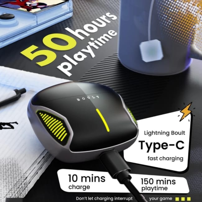 Y1 Gaming With 50Hr Battery, App Support, Dual Pairing, 4 Mic ENC, Mode Sync LEDs Bluetooth Headset (Electric Black, True Wireless)