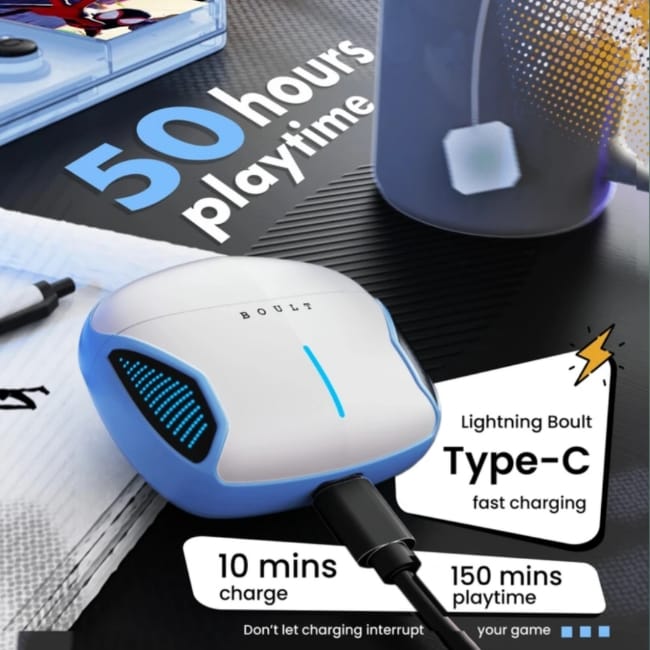 Y1 Gaming With 50Hr Battery, App Support, Dual Pairing, 4 Mic ENC, Mode Sync LEDs Bluetooth Headset (Electric Sky-Blue, True Wireless)